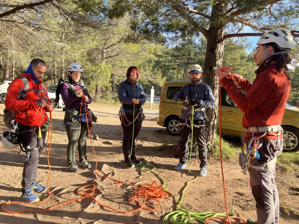 La formación se realiza en una jornada práctica en la Vía Ferrata de les Baumes Corcades, en Centelles, donde aprenderás: